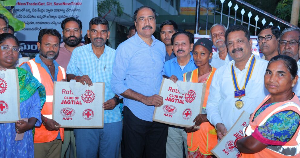 జగిత్యాల : ఆరోగ్యవంతమైన సమాజం కావాలనుకుంటే ప్లాస్టిక్ బ్యాగులను నివారించాల్సిందే, అది ప్రజల చేతుల్లోనే ఉంది… అంటూ, జగిత్యాల పట్టణ పరిశుభ్రత అభివృద్ధి వైపు ముందుకు సాగుతున్న తరుణంలో ప్లాస్టిక్ బ్యాగులు నివారించకుంటే అనారోగ్యం తప్పదని ఎన్నిసార్లు చెప్పినా ప్రజలు అర్థం చేసుకోకుంటే, ఇక ప్రమాదమేనని రొటేరియన్, జగిత్యాల ఎమ్మెల్యే డాక్టర్ సంజయ్ కుమార్ స్పష్టం చేశారు. ప్లాస్టిక్ రహిత సమాజ నిర్మాణంలో భాగంగా ఆపి – రోటరీ క్లబ్ – ఇండియన్ రెడ్ క్రాస్ సొసైటీ […]