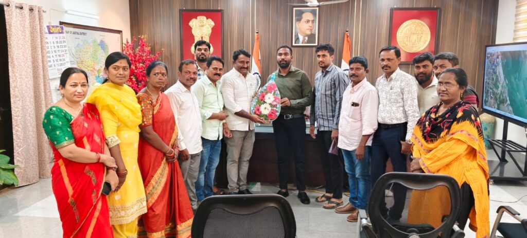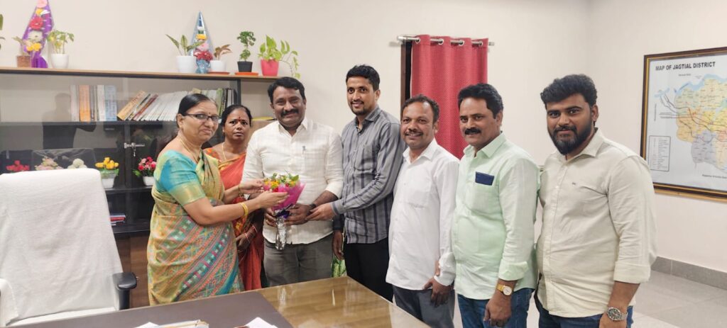 ఇటీవల జరిగిన గ్రామ పంచాయతి ఎన్నికలు ప్రశాంతంగా ముగిసిన సందర్భంగా జగిత్యాల జిల్లా అధ్యక్షులు మిర్యాల నాగేందర్ రెడ్డి ఆధ్వర్యంలో ఉద్యోగులు జగిత్యాల జిల్లా కలెక్టర్ బి. సత్యప్రసాద్ ను, అదనపు కలెక్టర్లు శ్రీమతి బి ఎస్ లత మరియు రాజగౌడ్ లను శుక్రవారం మర్యాదపూర్వకంగా కలిసి పుష్పగుచ్చం అందించి శుభాకాంక్షలు తెలిపారు.