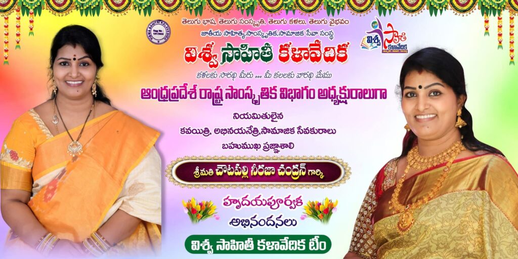 ఆంధ్రప్రదేశ్ రాష్ట్ర సాంస్కృతిక విభాగం అధ్యక్షురాలుగా శ్రీమతి చౌటపల్లి నీరజచంద్రన్