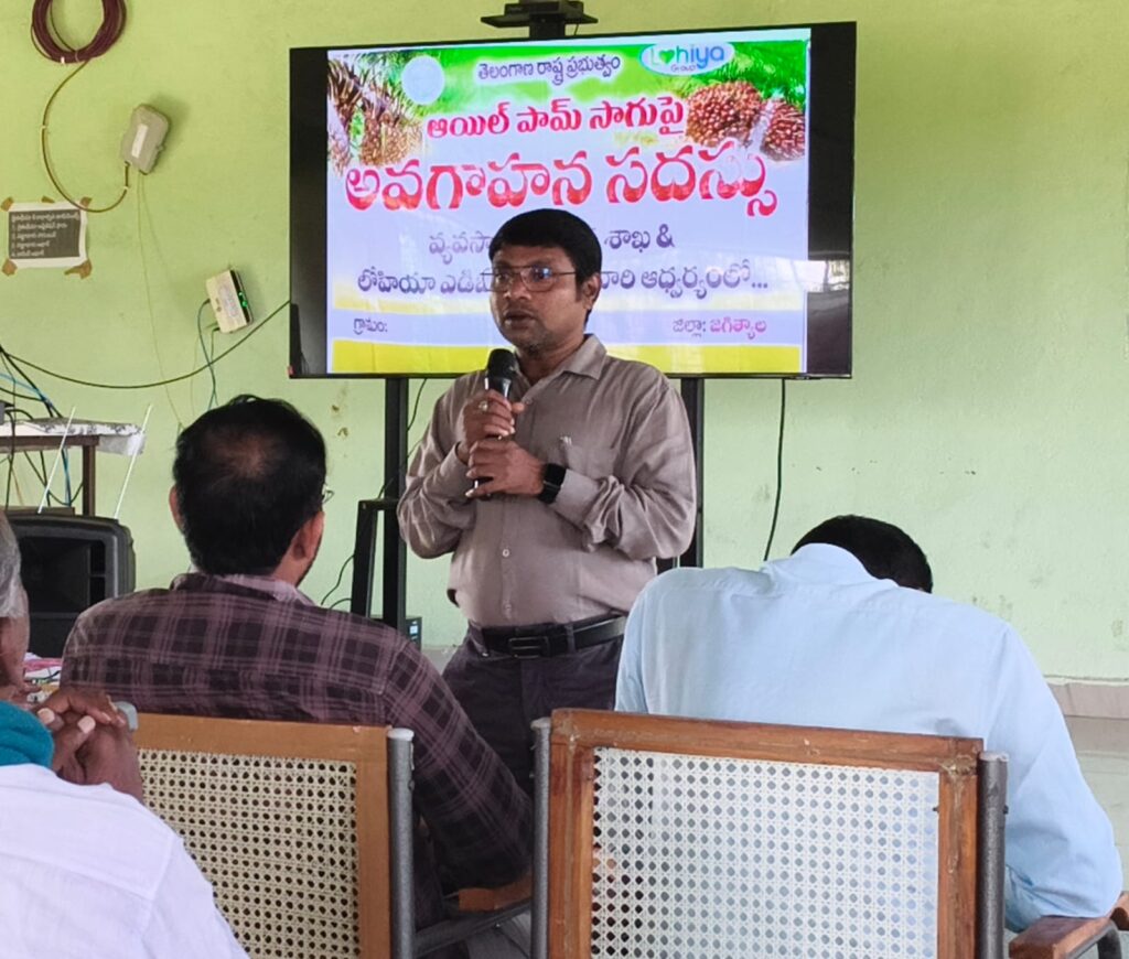 మంగళవారం జగిత్యాల జిల్లా కొడిమ్యాల మండలం పూడూర్ గ్రామంలో ఆయిల్ పామ్ సాగు పద్ధతులపై, తోటల యాజమాన్యం మరియు ఉద్యాన శాఖ ద్వారా ప్రభుత్వం కల్పిస్తున్న రాయితీ సదుపాయాల గురించి రైతులకు అవగాహన సదస్సు నిర్వహించడం జరిగిందని జిల్లా ఉద్యాన మరియు పట్టు పరిశ్రమ అధికారి శ్యాంప్రసాద్.. లోహియా కంపెనీ జిల్లా మేనేజర్ విజయ్ భరత్ తో కలిసి ఒక ప్రకటనలో తెలిపారు.