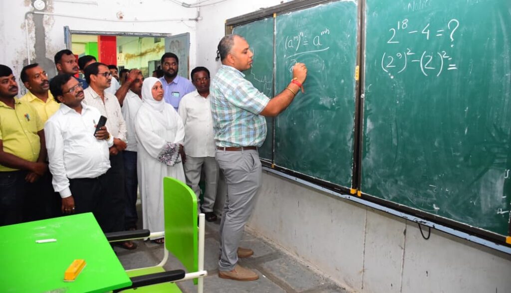 అనంతరం విద్యార్థులకు కలెక్టర్ మ్యాథ్స్ పాఠాలు బోధించారు. జిల్లా పరిషత్ ఉన్నత పాఠశాలలో యూనిఫామ్ లు విద్యార్థులకు పంపిణీ చేయాలని, కంప్యూటర్ ల్యాబ్ అందుబాటులోకి తీసుకురావాలని, గ్రీన్ బోర్డులు తరగతి గదుల్లో ఏర్పాటు చేయించాలని, ఆహార పదార్థాలు గ్యాస్ స్టౌ పైనే సిద్ధం చేయాలని సూచించారు.