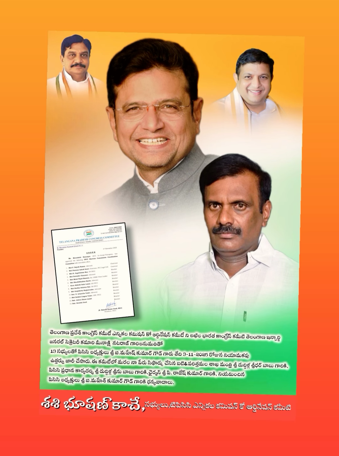 తెలంగాణ ప్రదేశ్ కాంగ్రెస్ కమీటీ ఎన్నికల కమిషన్ కో ఆర్డినేషన్ కమీటీలో శశి భూషణ్ కాచే