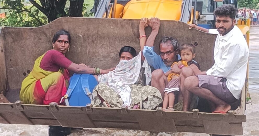 గర్భీణి స్త్రీని జెసిబి సాయంతో వాగు దాటించిన గ్రామస్థులు