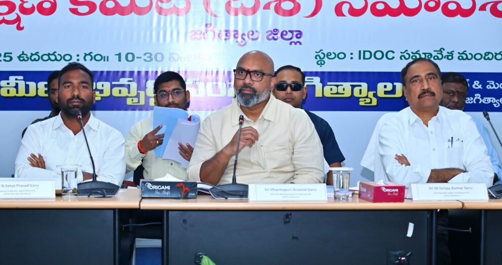 జగిత్యాల కలెక్టరేట్లో దిశ సమావేశం: మంగళవారం జగిత్యాల జిల్లా అభివృద్ధి సమన్వయ మరియు పర్యవేక్షణ కమిటీ (దిశ ) సమావేశం జిల్లా కలెక్టరేట్ సమావేశ మందిరంలో నిర్వహించారు. దిశ కమిటీ చైర్మన్,నిజామాబాద్ ఎంపీ ధర్మపురి అర్వింద్ ముఖ్య అతిధిగా హాజరై జగిత్యాల ఎమ్మెల్యే సంజయ్ కుమార్, జిల్లా కలెక్టర్ బి. సత్యప్రసాద్ తో కలిసి సమీక్ష సమావేశం నిర్వహించారు. కేంద్ర ప్రభుత్వం చేపడుతున్న అభివృద్ధి పనుల గురించి అడిగి అధికారులను అడిగి తెలుసుకున్నారు. యూఐడిఎఫ్, ధాన్యం కొనుగోల్లు, […]